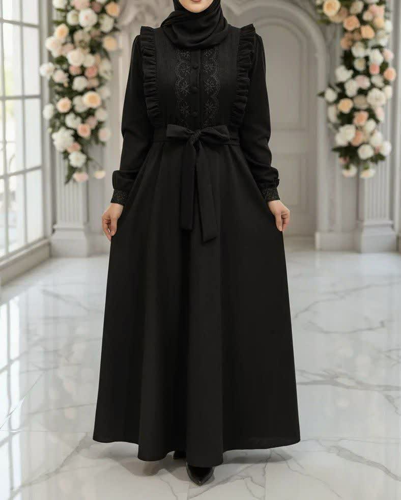 عبا زنانه مدل پرنسس سفارشی مزون دوز جنس حریر اسود و کرپ الیزه در رنگبندی